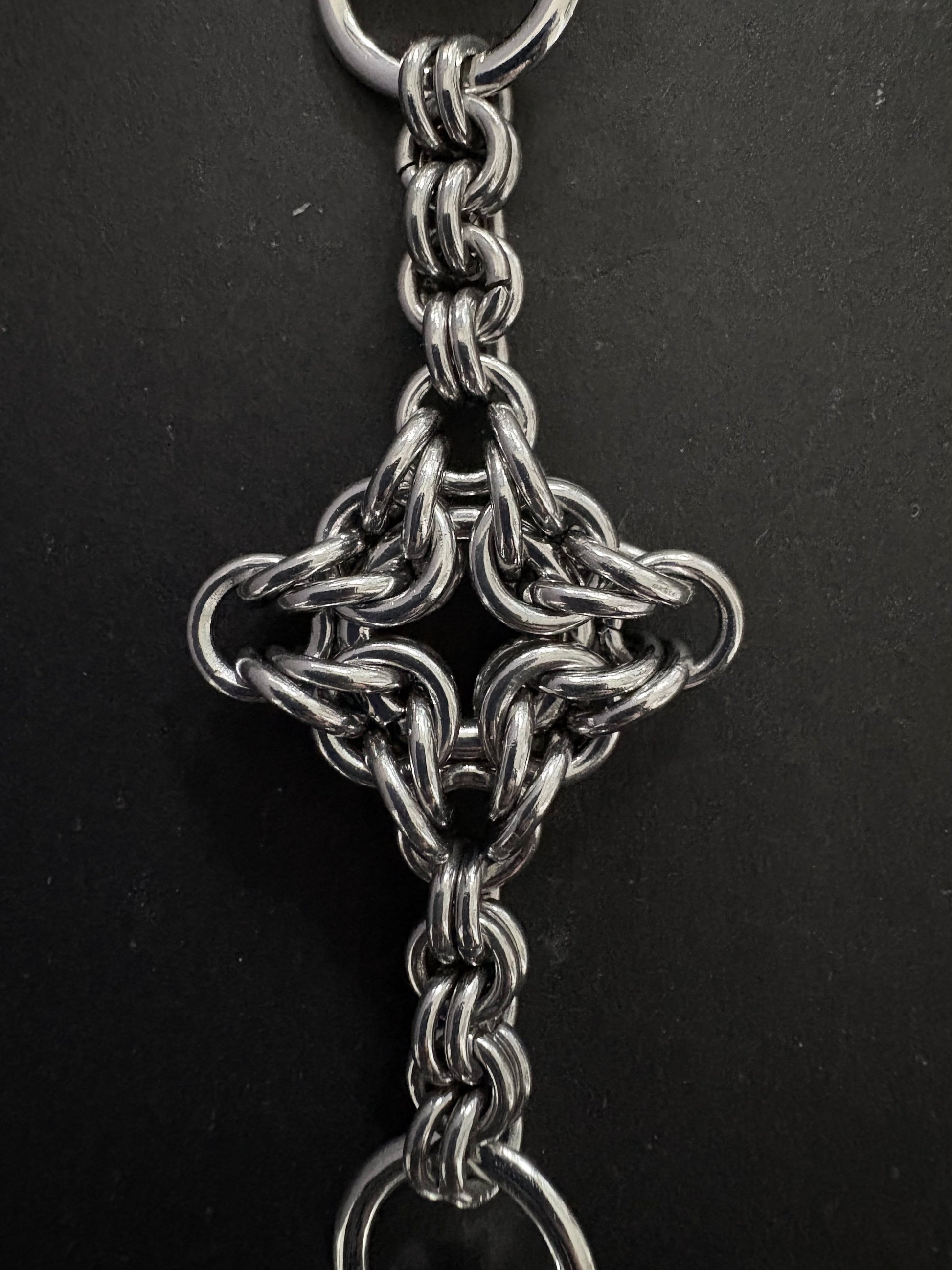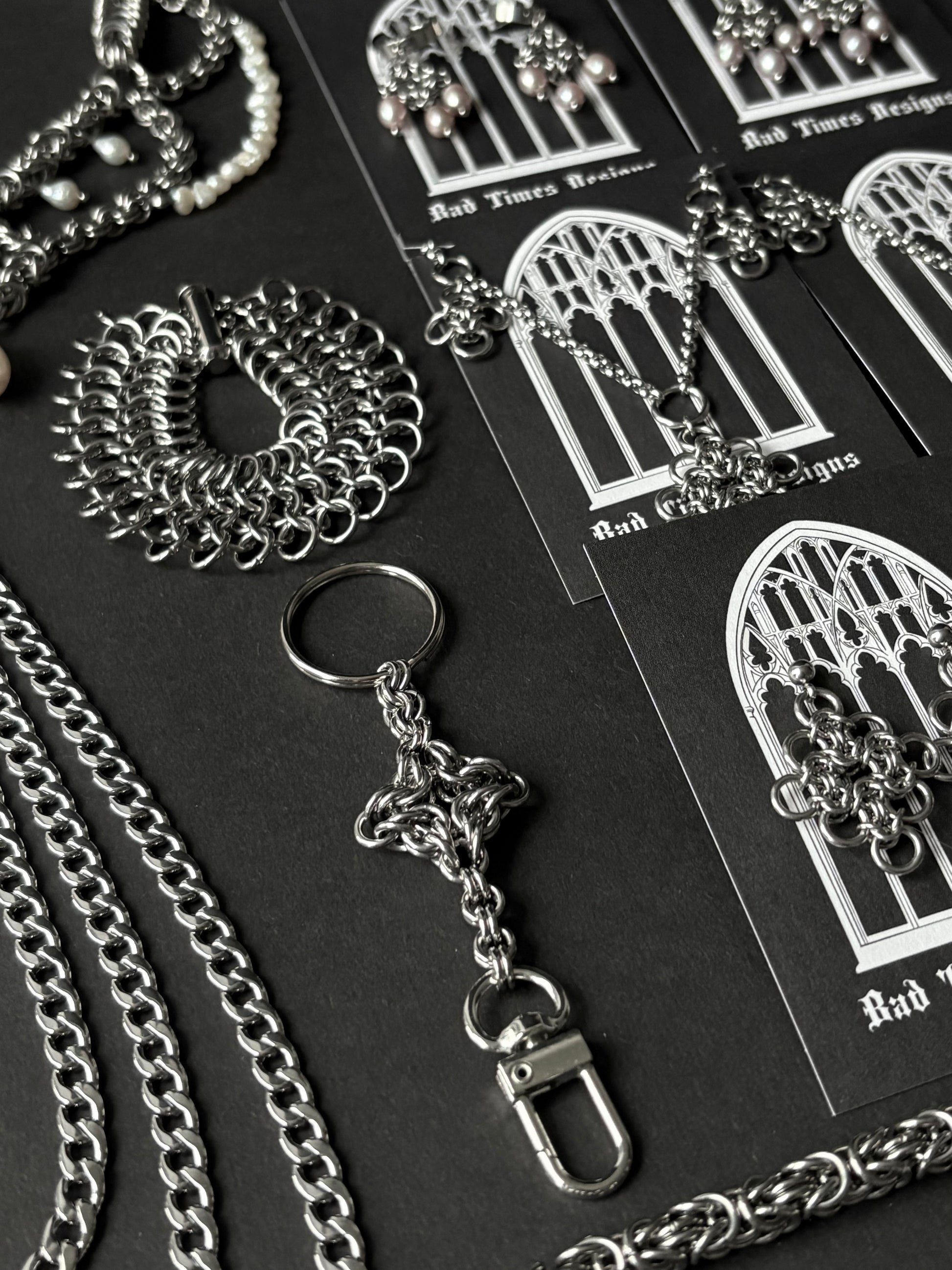 This decorative multi-purpose key chain can be used for belt loops, airpod cases, water bottles or even as an accessory to clothing or other jewellery. Key chains are hand woven from solid stainless steel with a metal alloy clasp on one end and the option of a metal alloy clasp or key ring on the other.