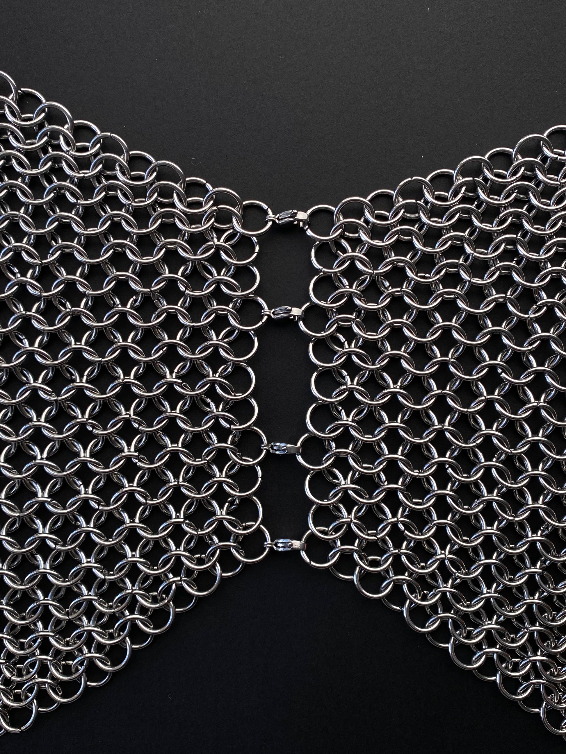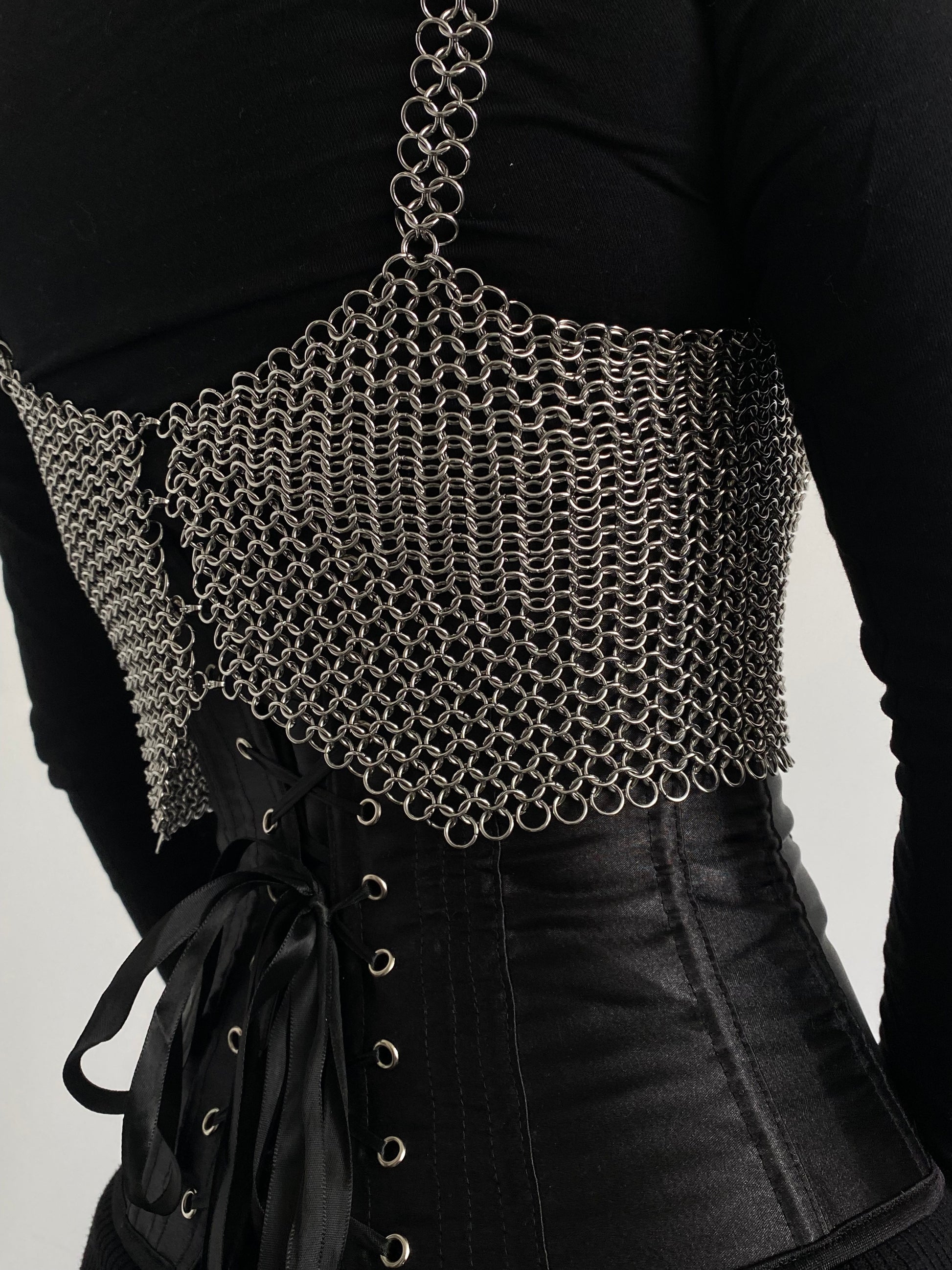 Handmade from 100% stainless steel european 4-in-1 chainmail, with 4 stainless steel lobster claps on the back. Every care has been taken to ensure this top is finished perfectly and hangs evenly from every angle. This top has a circumference of approximately 90cm/35in, and straps of approximately 41cm. The weave is relatively stretchy will sit differently on different body types. Model is a UK size 6-8 with a FF bust.
