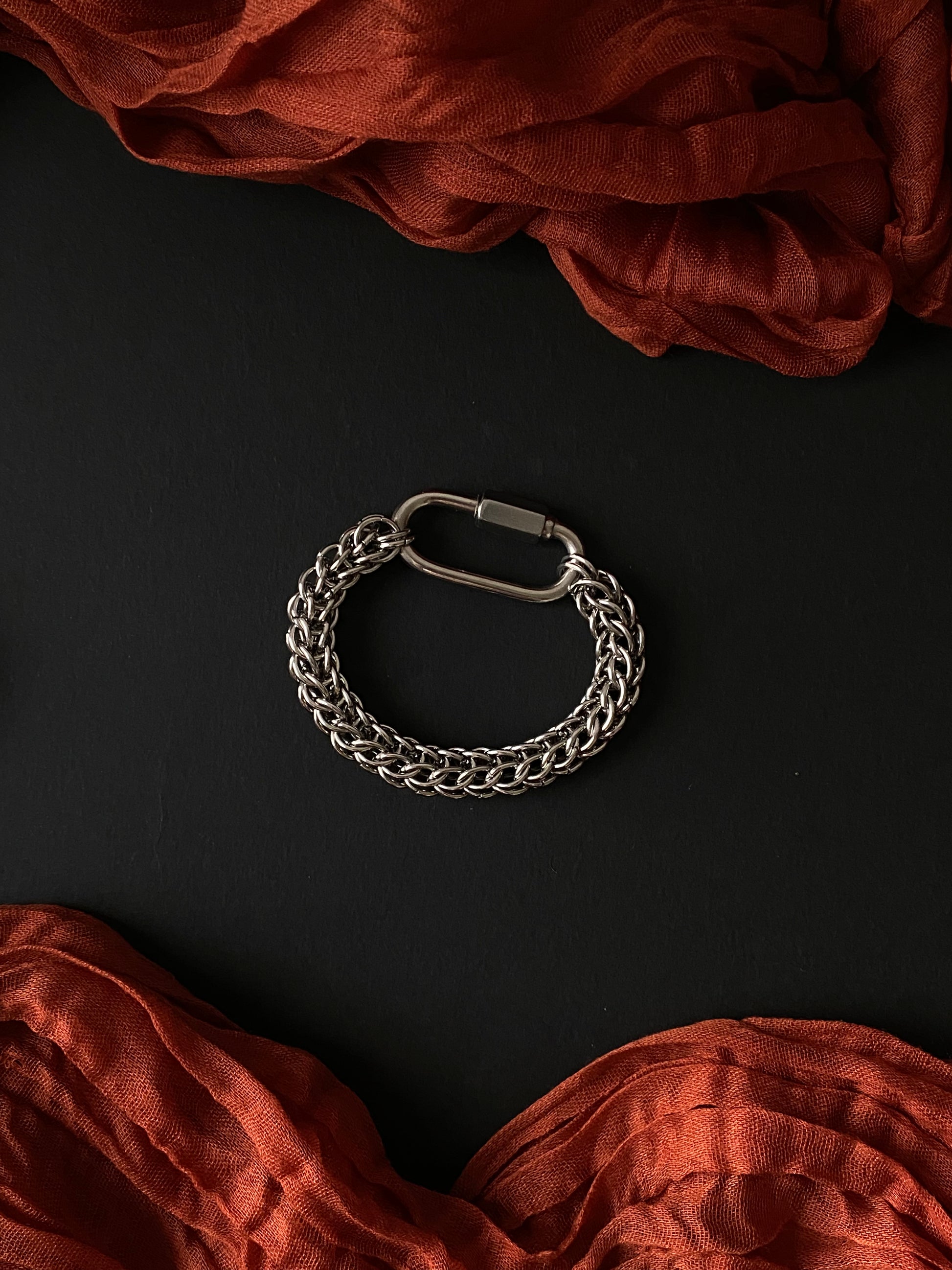 Prefer a heavier bracelet? Chunky PERSIA has you covered! This bracelet features a statement quick link clasp which can be worn on show at the front or hidden at the back. Handmade to order in a 6-in-1 full persian weave from solid stainless steel rings and joined with a stainless steel quick link. Stainless steel is rust-resistant and durable, making our chainmail pieces an everyday staple.