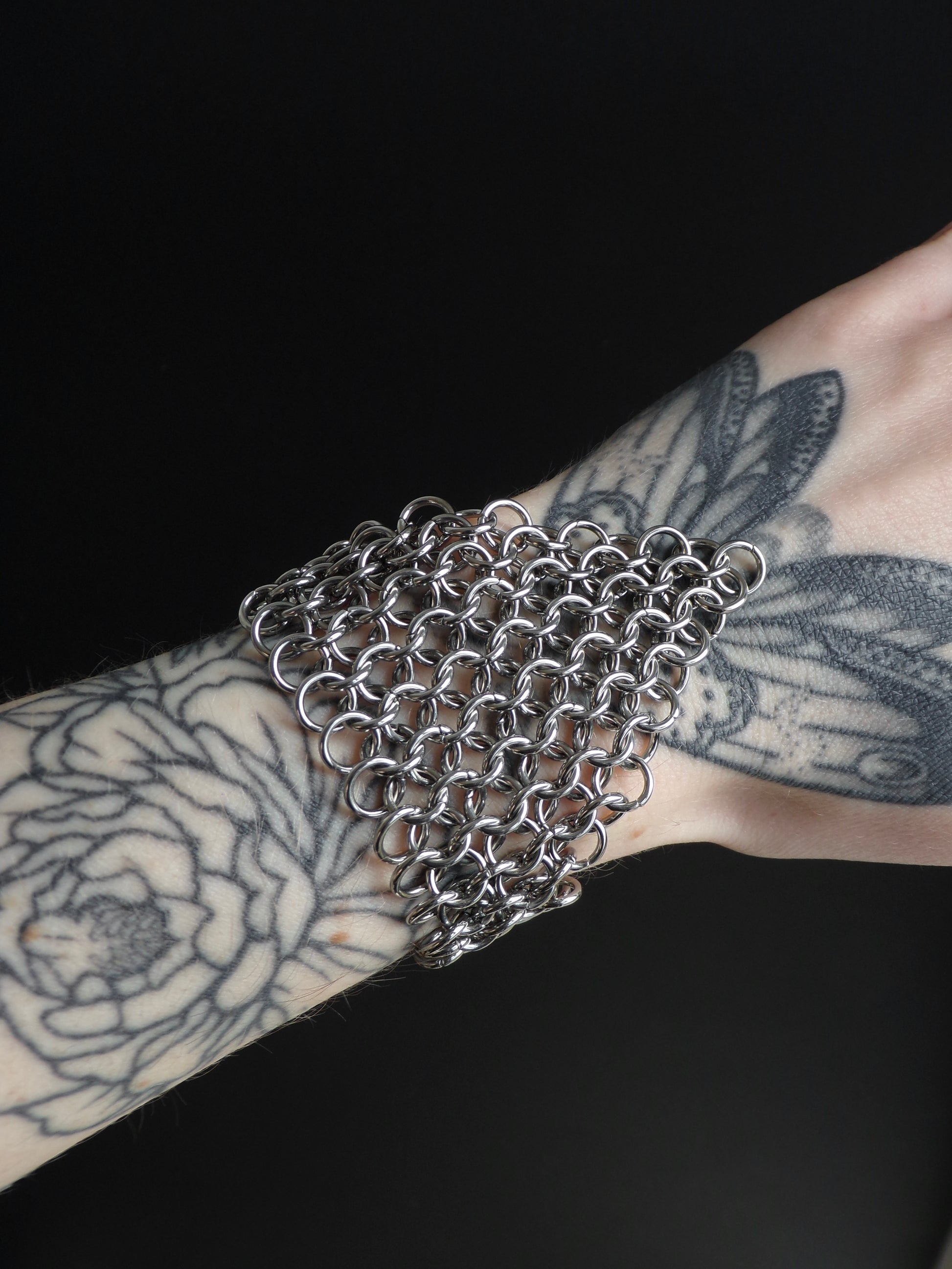 From the MARTYR chainmail collection, this simple bracelet will elevate any outfit with subtle gothic glamour. Just like the necklaces, this bracelet style comes in two regal variations: this is the Princess. Handmade from solid stainless steel rings in a European 4 in 1 weave and joined with a stainless steel slide clasp. Stainless steel is rust-resistant and durable, making our chainmail pieces an everyday staple.