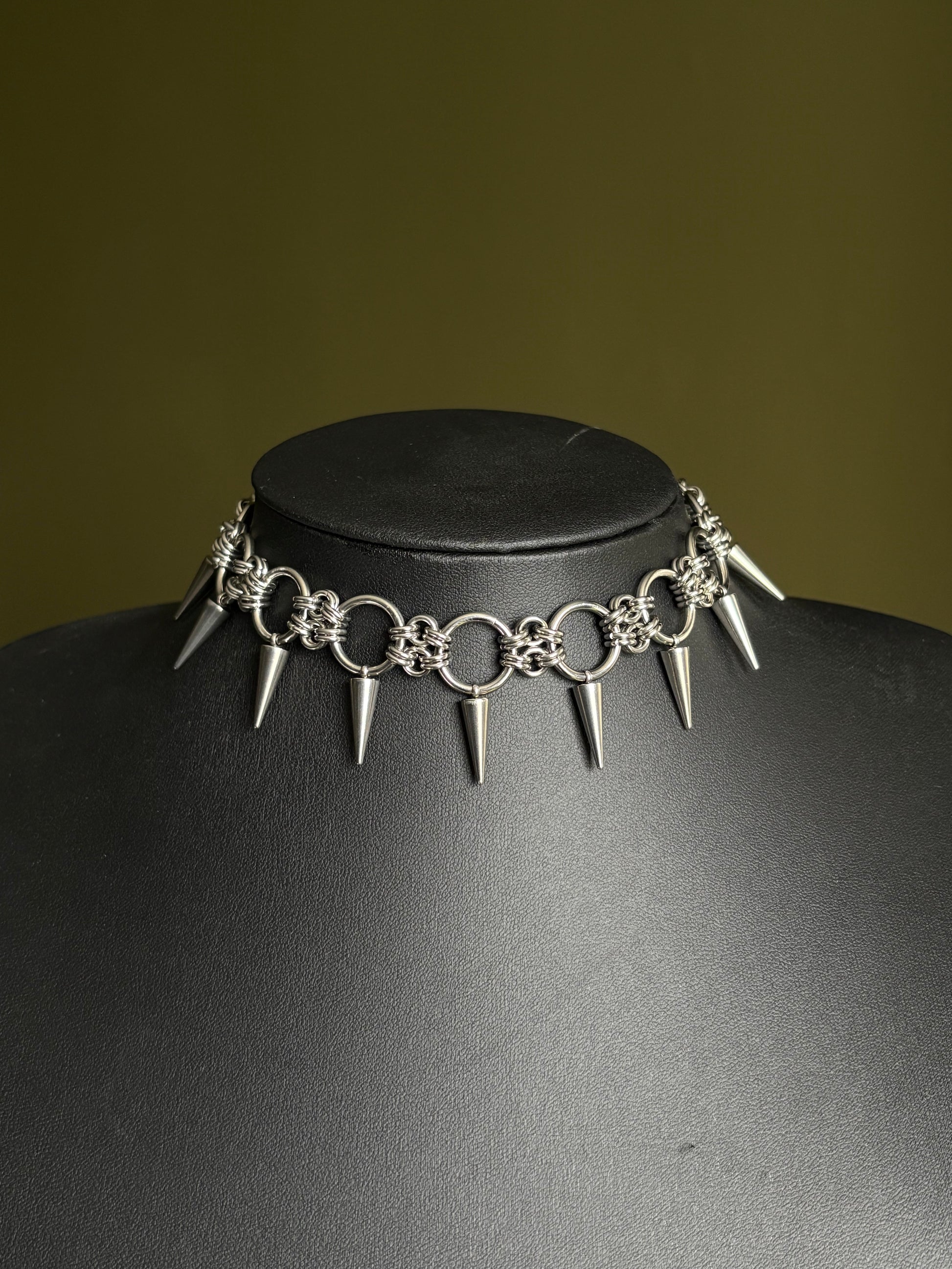 NOCTURNE is back with a brand new edition! Instead of semi-precious gems, this time I've gone for something a little sharper. This simple collar necklace is adorned with spike pendants all the way round, perfect for adding some edge to the everyday.