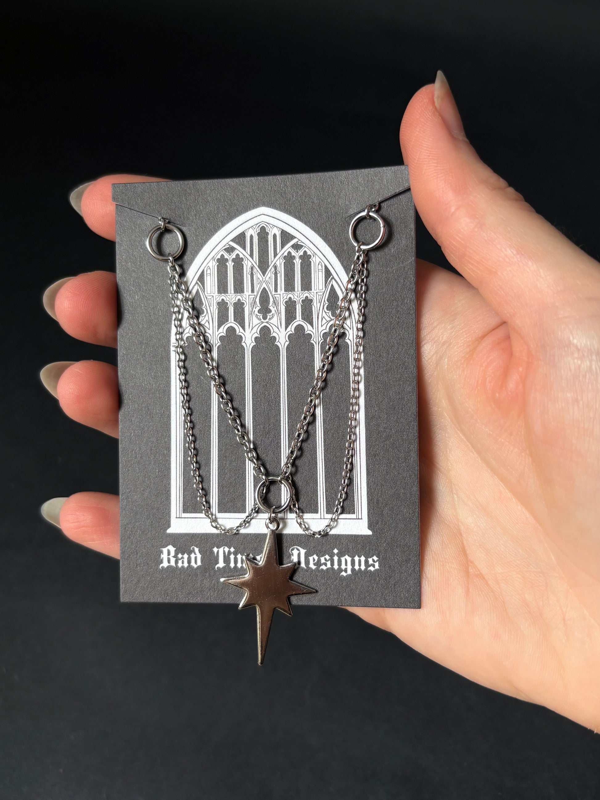 Simple and dainty necklaces are a must-have. This chandelier pendant necklace is handmade with solid stainless steel chains and fixings, and rhodium plated North Star pendant. This necklace looks great on its own or layered with other chains. Each necklace comes with a 5cm extender chain.