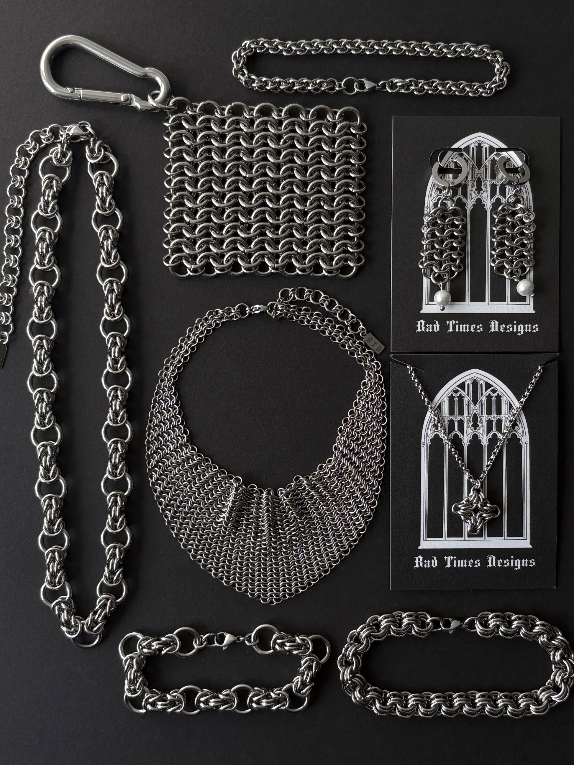 Delicate hanging chainmail earrings with a single glass pearl. Handmade from solid stainless steel with stainless steel hooks/hoops and glass beads.