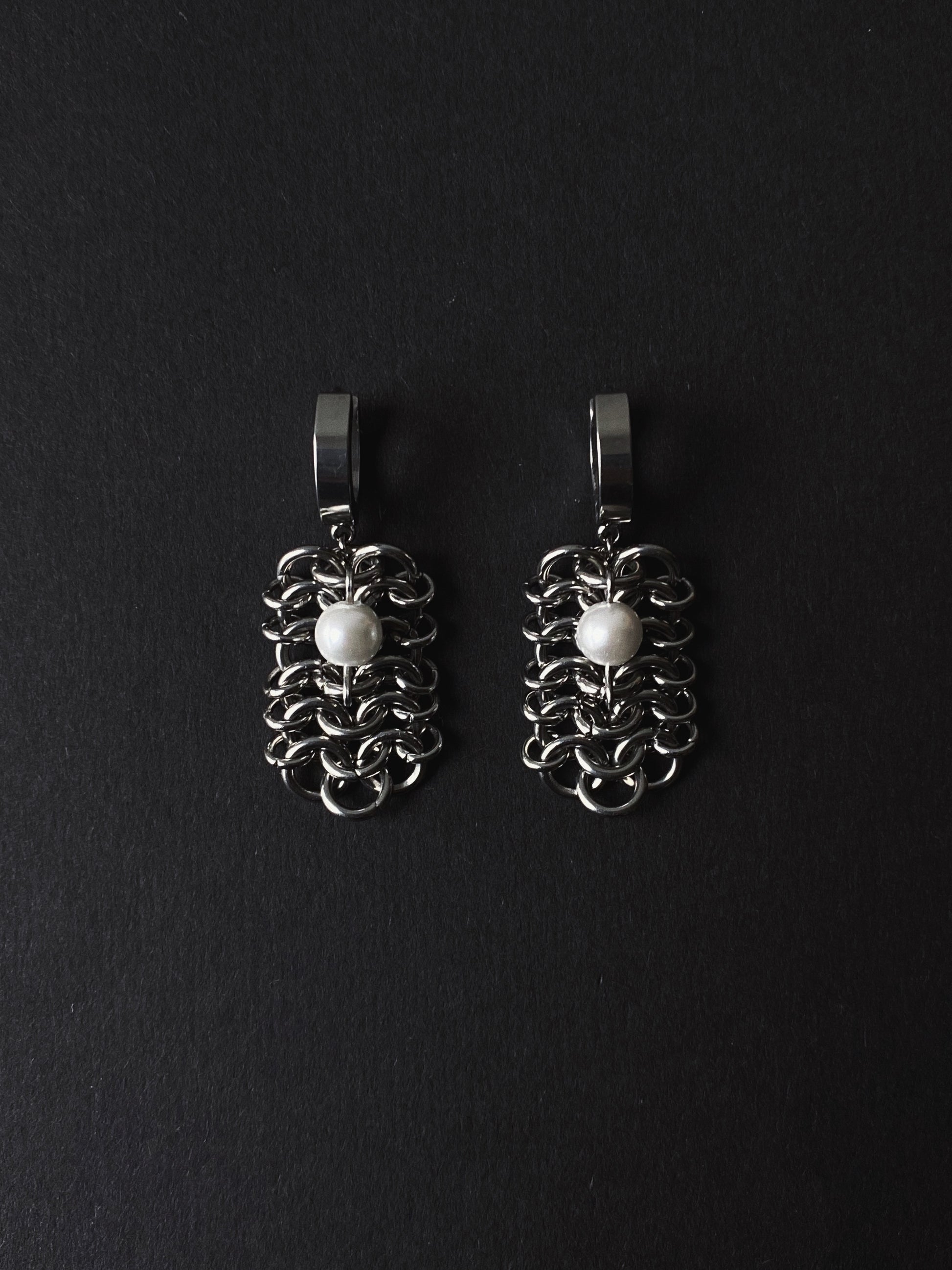 These earrings may look unassuming when laying flat, but pick them up and they become beautiful representations of the vulva. The faux pearl softens the coldness of the metal to give the illusion of an elegant organ. Handmade from solid stainless steel with stainless steel hooks/hoops and glass.