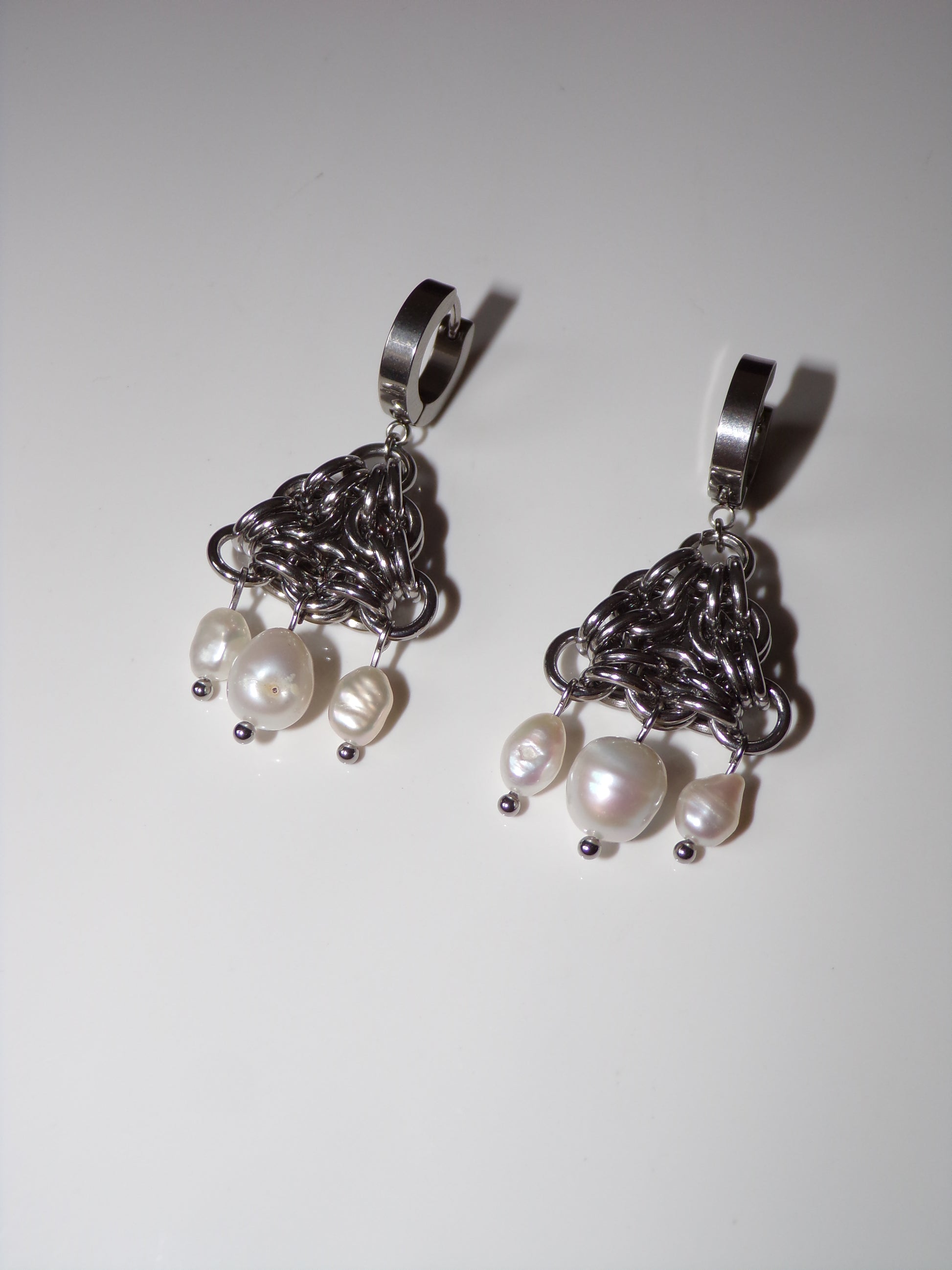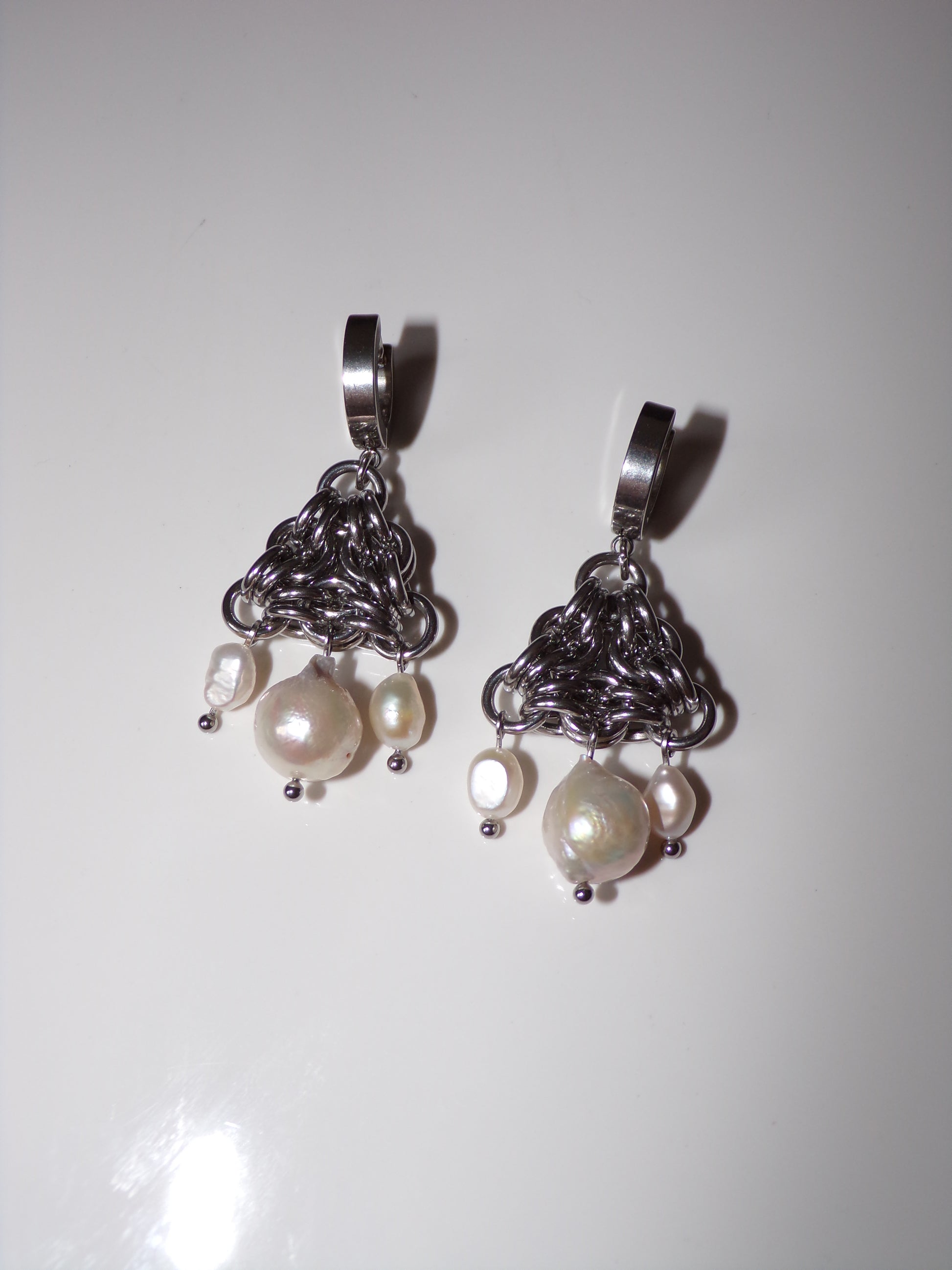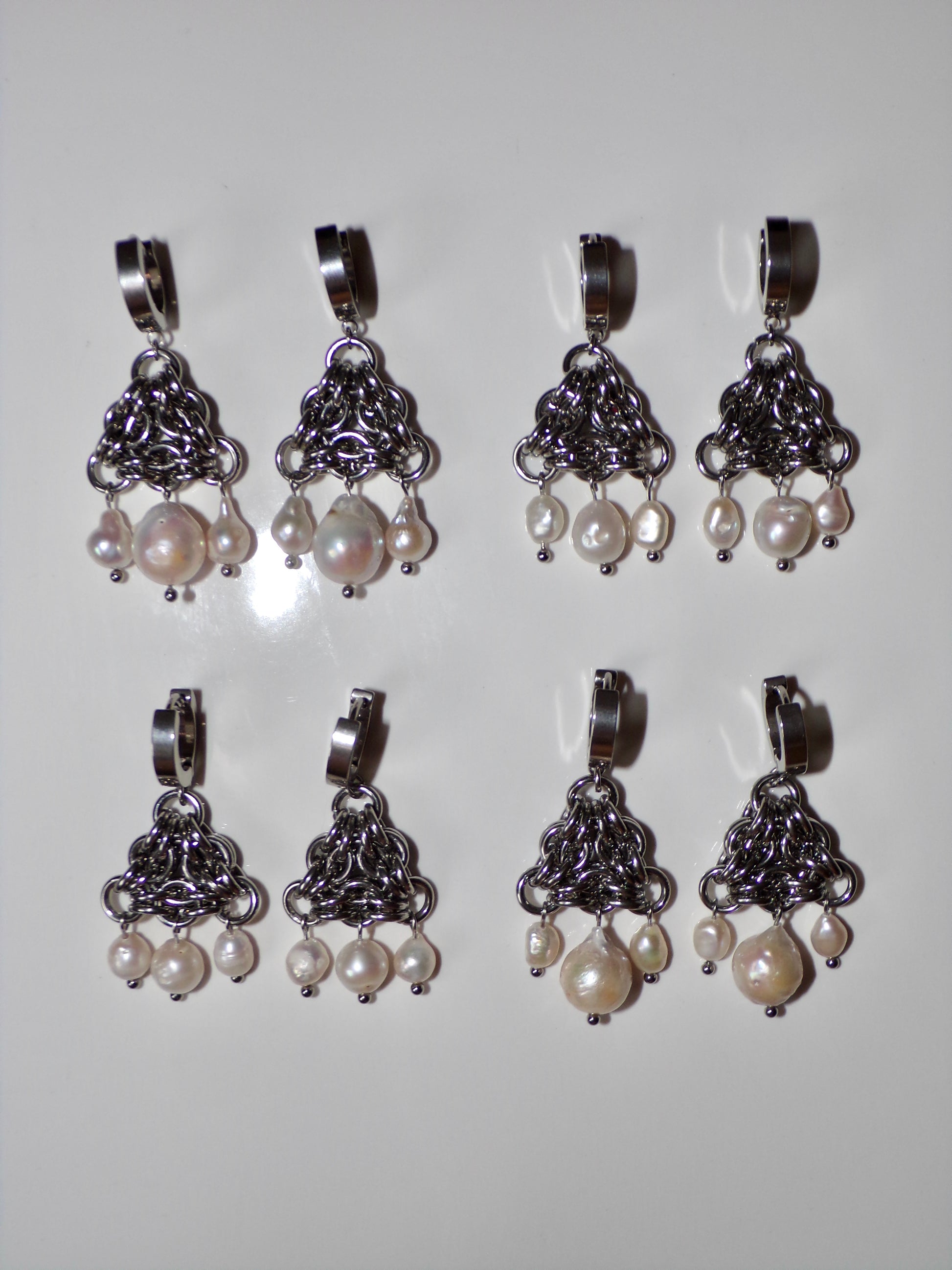 Every pearl deserves to be celebrated, even the ones with flaws! These earrings feature not-so-perfect stones at a more affordable price point. Each pair features a chainmail Byzantine triangle with three unique pearls hanging from the bottom. Pearls have been carefully chosen in order to be complimentary in size, shape and colour.