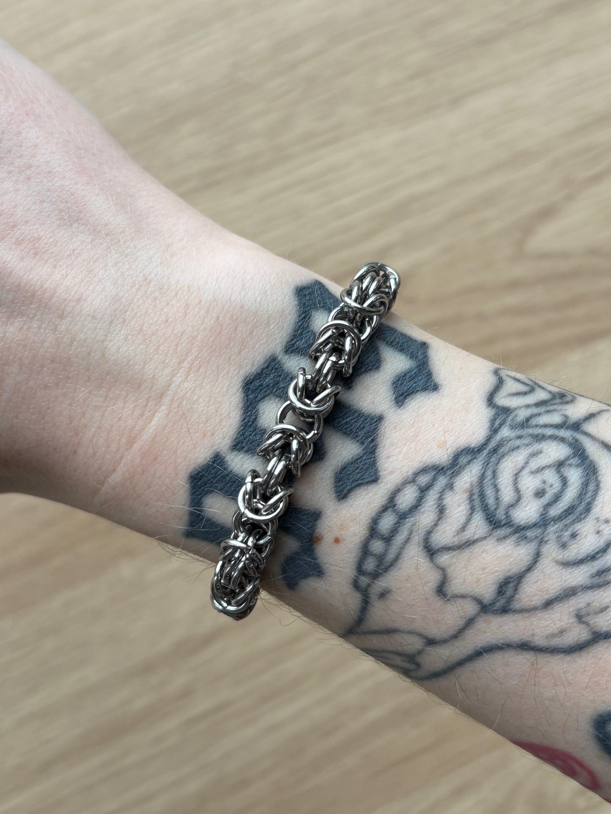 Size Guide: Your bracelet will be made to fit the measurement you select from the size options. To measure your wrist, wrap a fabric tape measure around your wrist (or use piece of string against a ruler) and take note of the nearest centimetre. If you are in between sizes or prefer a looser fit we would advise sizing up. If you would like the bracelet to be snug against your wrist you may need assistance getting it on and off. The length of the bracelet will vary depending on the design and thickness so if you order more than one bracelet they may be different lengths. Chains will be made as close to your size as possible, however some weave types will mean that the chain may be slightly longer by a few millimetres.
