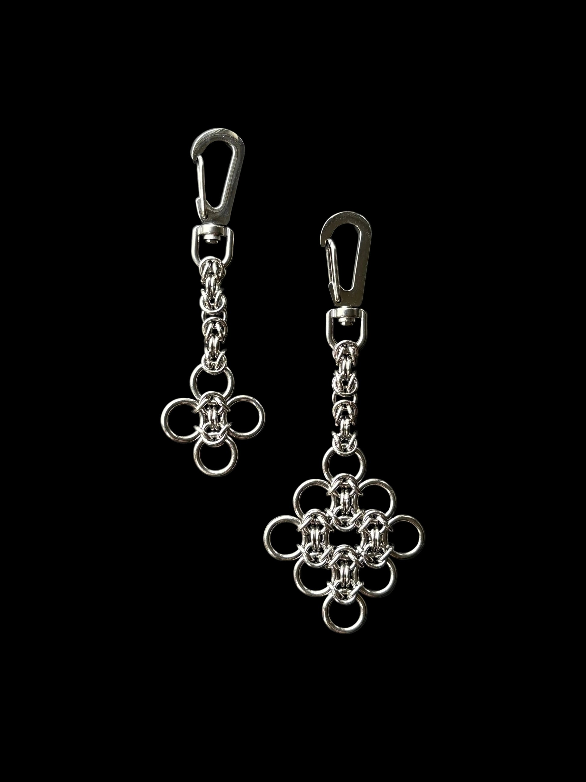 The TEMPLE range wouldn't be complete without matching bag charms! The iconic cathedral window is available in two sizes, representing the Trefoil (Small) and the Cinquefoil (Large). Pendants are hand woven from solid stainless steel and stainless steel clasps.