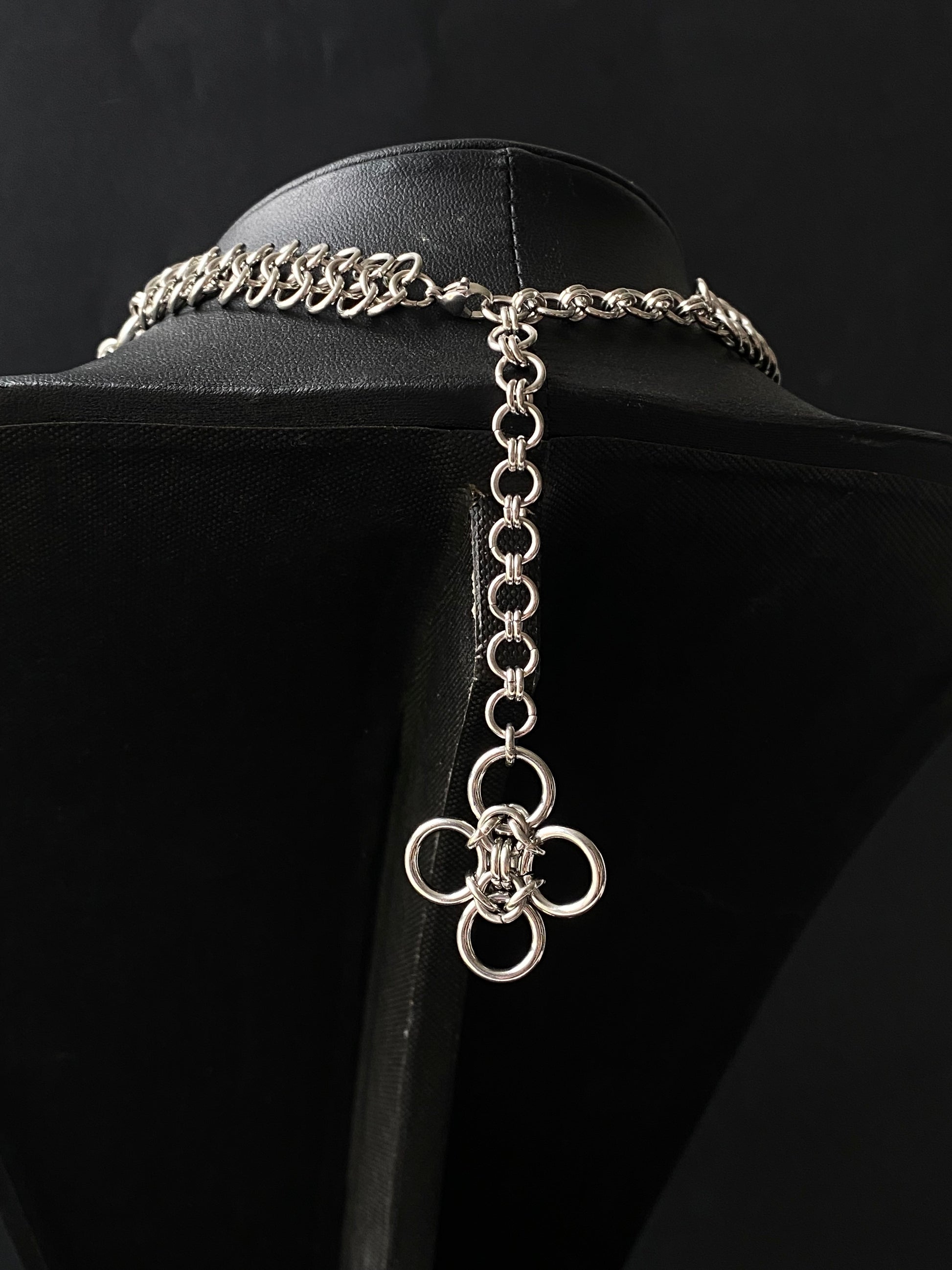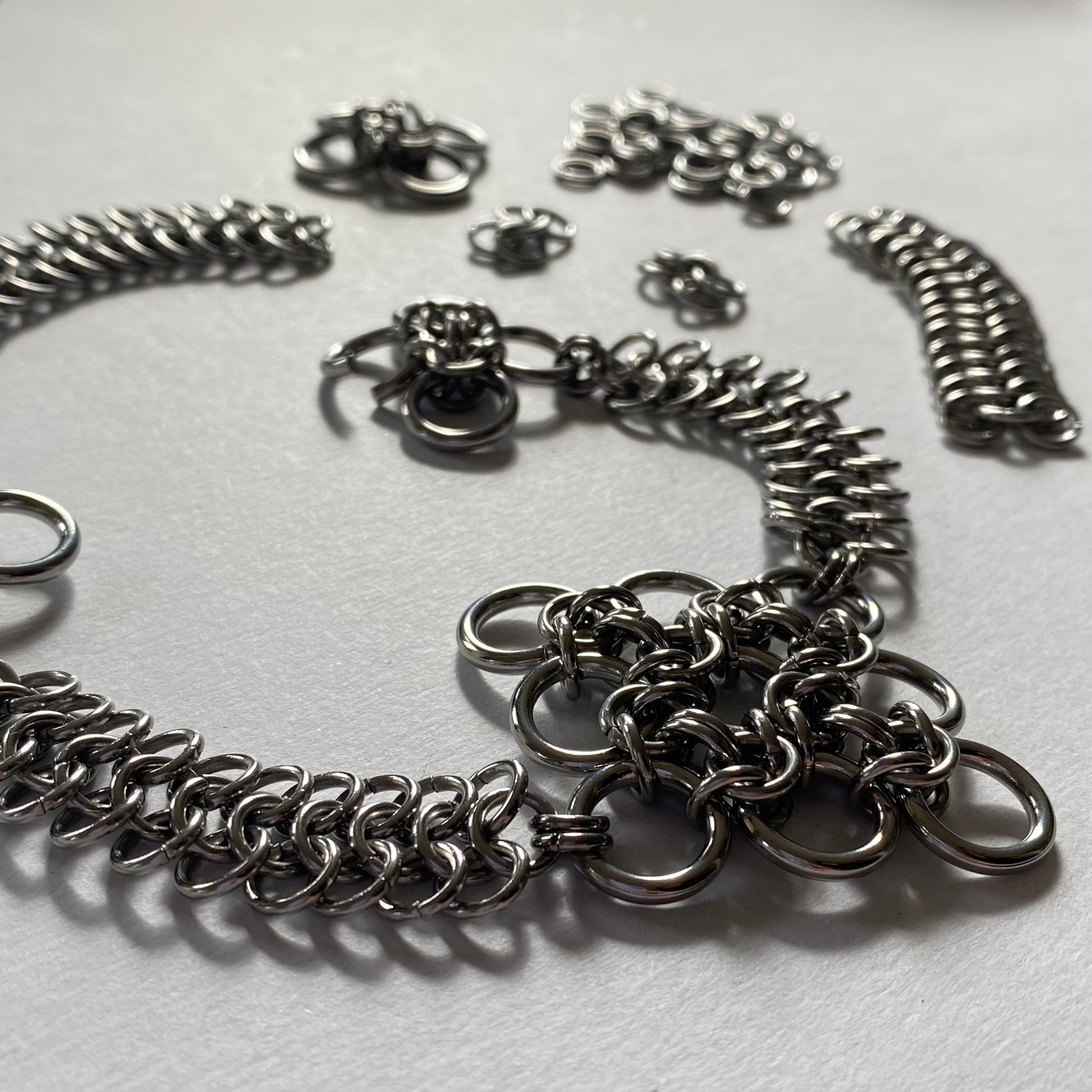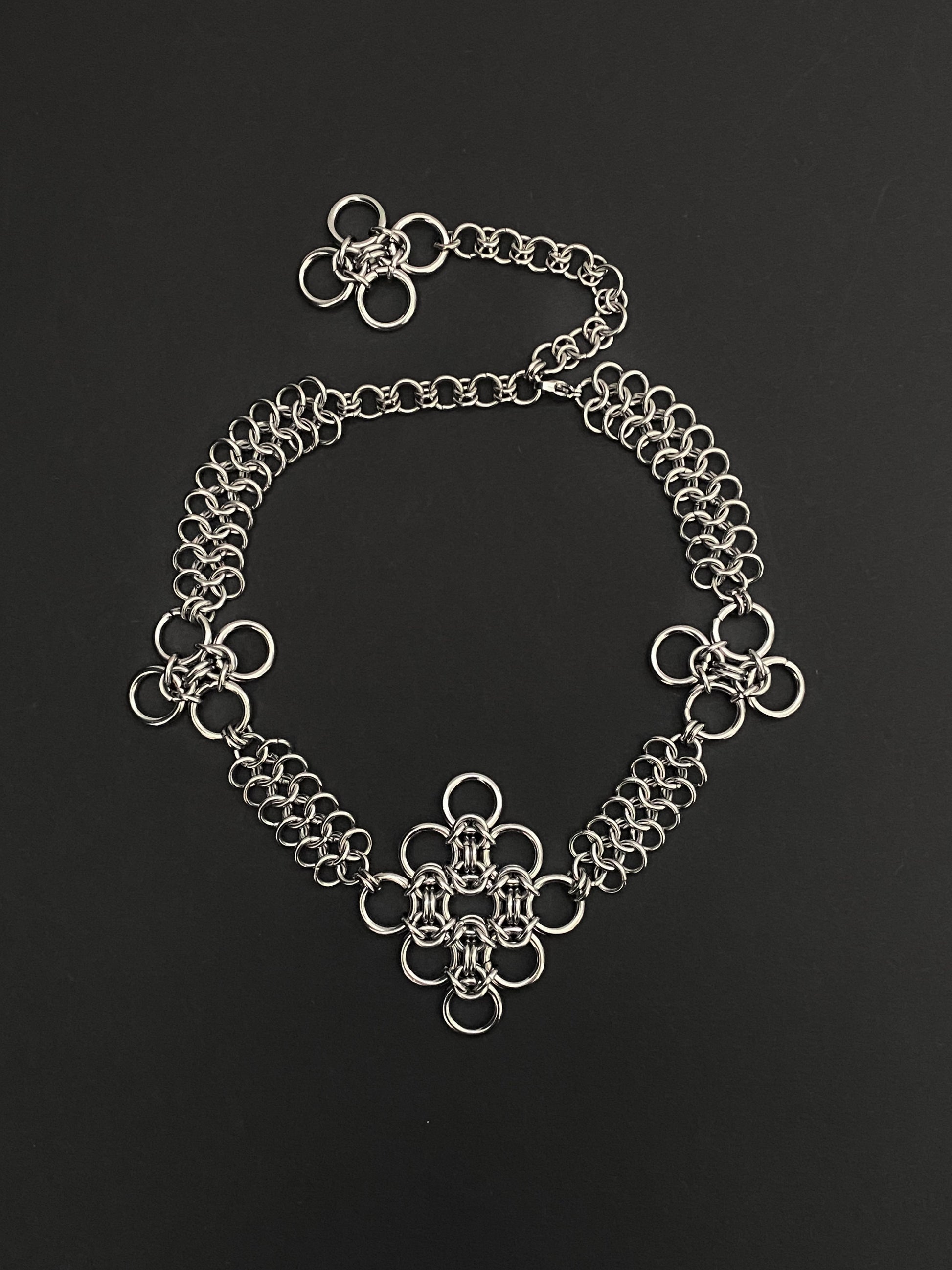 TEMPLE looks best as a collar but also works as a longer chain. The 5cm extender chain allows this necklace to be worn at the most comfortable length. Handmade from solid stainless steel rings, joined with a stainless steel lobster clasp. Stainless steel is rust-resistant and durable, making our chainmail pieces an everyday staple. Also in the TEMPLE range are earrings and two key rings.