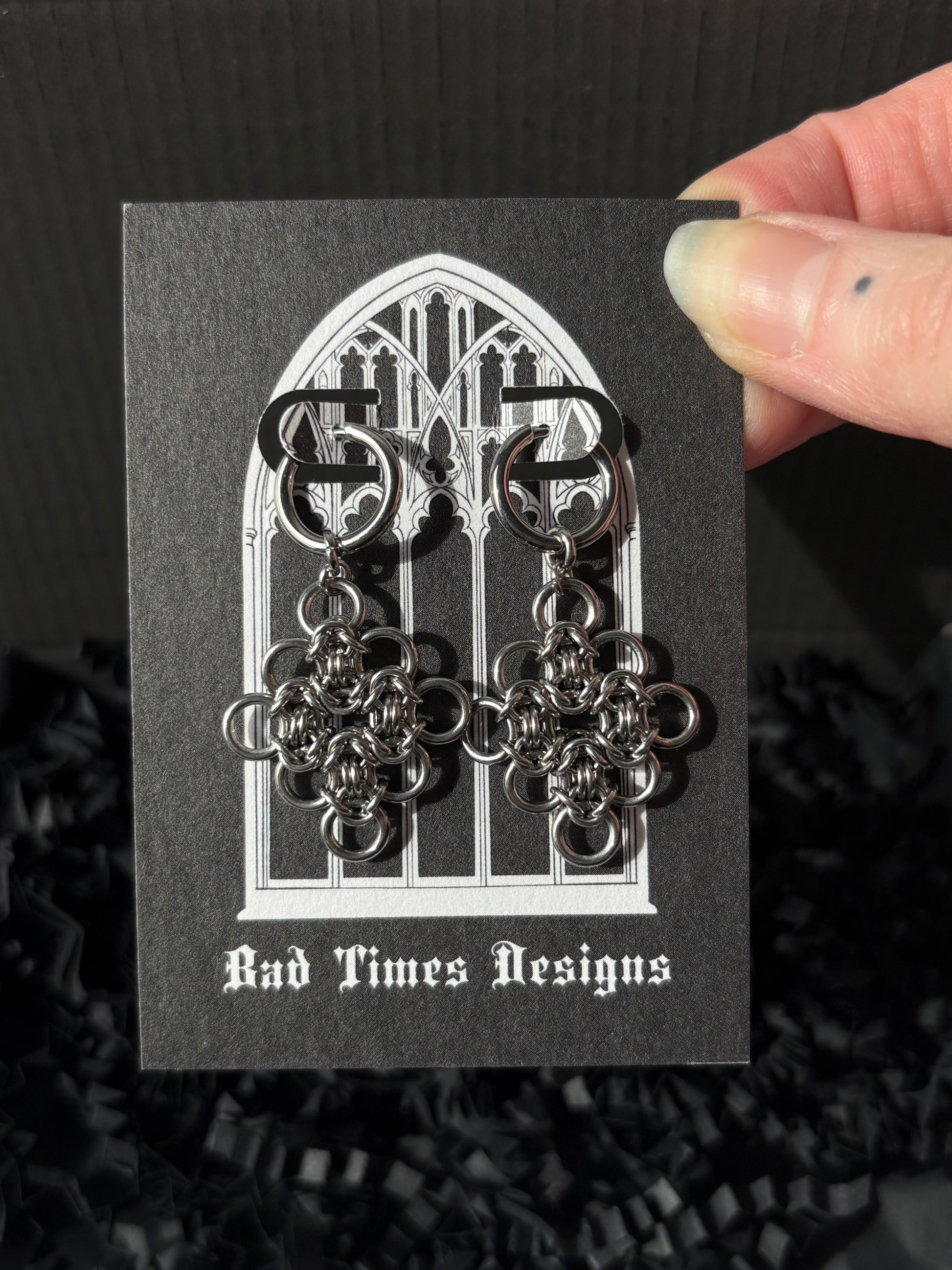 Metal allergies shouldn't stop you from being able to wear our earrings! Use this listing to upgrade your fixings to titanium hoops. These fixings are made from implant grade titanium (Ti-6AL4V-ELi ASTM F-136) and are totally safe for those with metal allergies. See an example of these hoops with SHRINE earrings in picture 3.
