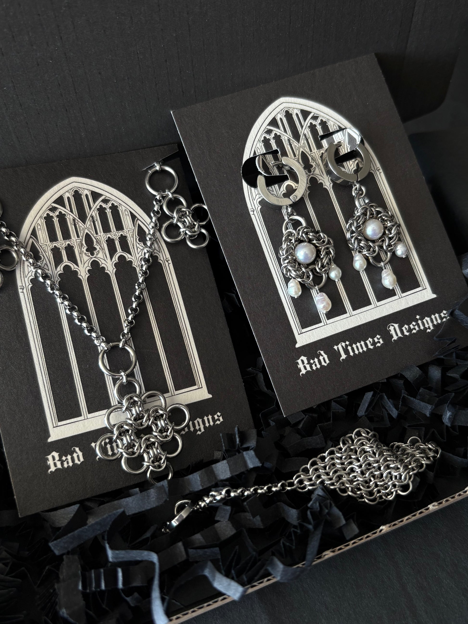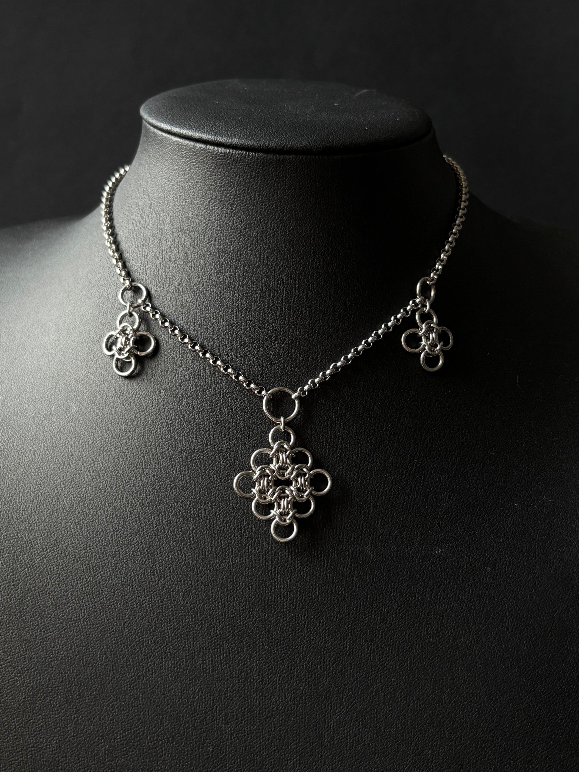 Handmade from solid stainless steel rings and rolo chain, joined with a stainless steel lobster clasp. Stainless steel is rust-resistant and durable, making our chainmail pieces an everyday staple. Each necklace comes with a 5cm extender chain.